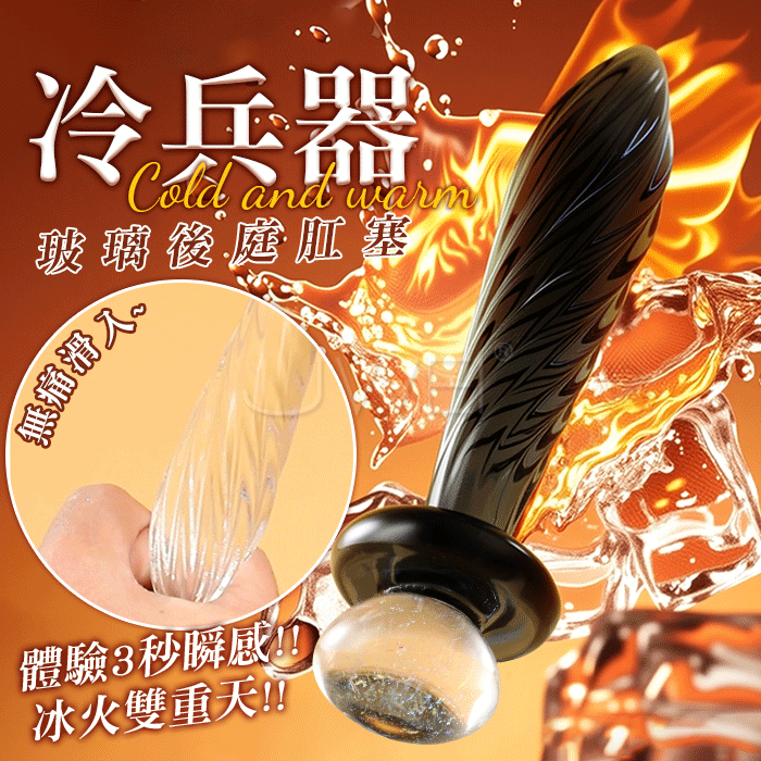 冷兵器.圓潤尖頭環形螺紋冰火雙體驗玻璃後庭肛塞【透黑】