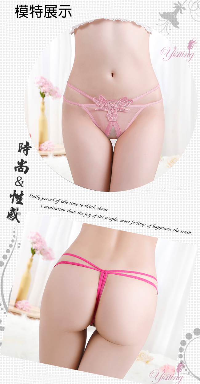 迷情綻放!雙彈力帶蝴蝶刺繡誘人露臀開襠丁字褲﹝粉﹞