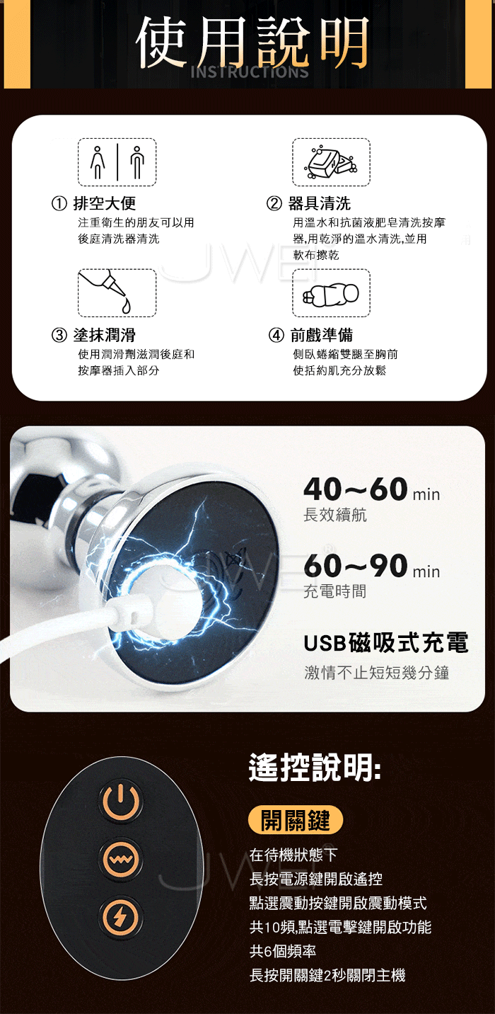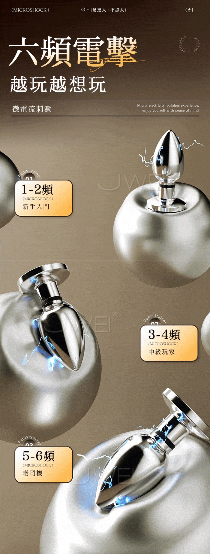 ►您現在的位置:首頁>電擊肛塞.6頻微電擊刺激+10頻強震金屬遙控後庭調教肛塞