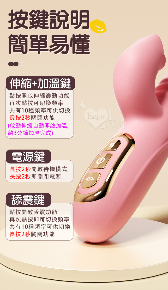 ►您現在的位置:首頁>Soul Choice 露西 ‧ 動感10X伸縮10X舔震仿真老二按摩棒﹝衝擊蜜穴+唇舌強震+智能加溫+親膚矽膠+靜音防水/便捷充電﹞粉