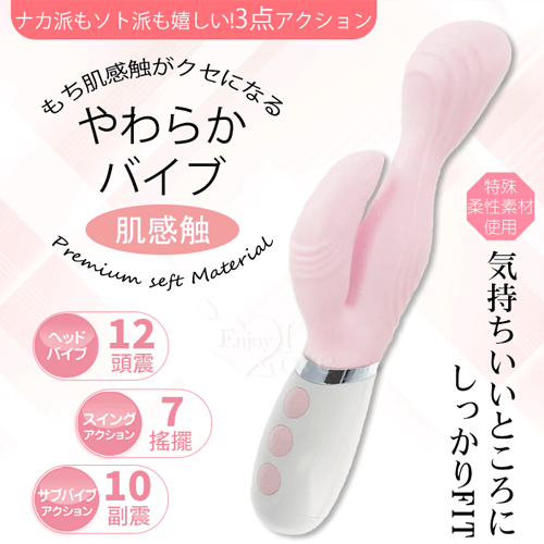 日本NPG.やわらかバイブ 肌感触 12頻頭震+7搖擺+10副震多功能柔和按摩棒-粉