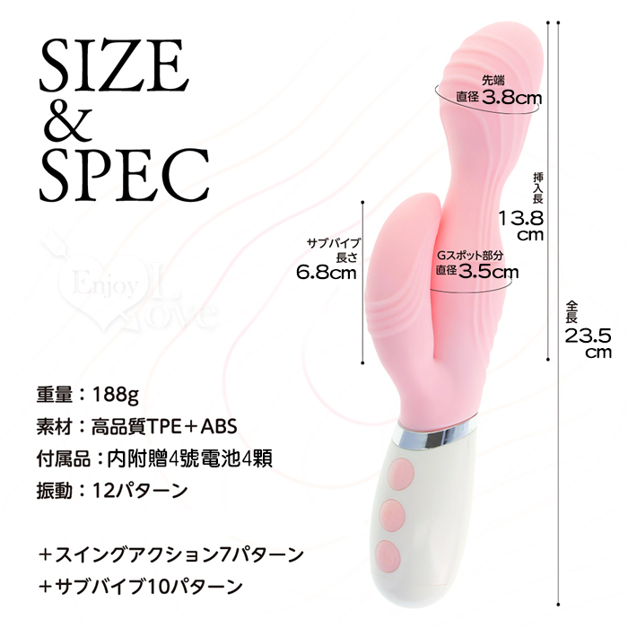 首頁>日本NPG.やわらかバイブ 肌感触 12頻頭震+7搖擺+10副震多功能柔和按摩棒-粉