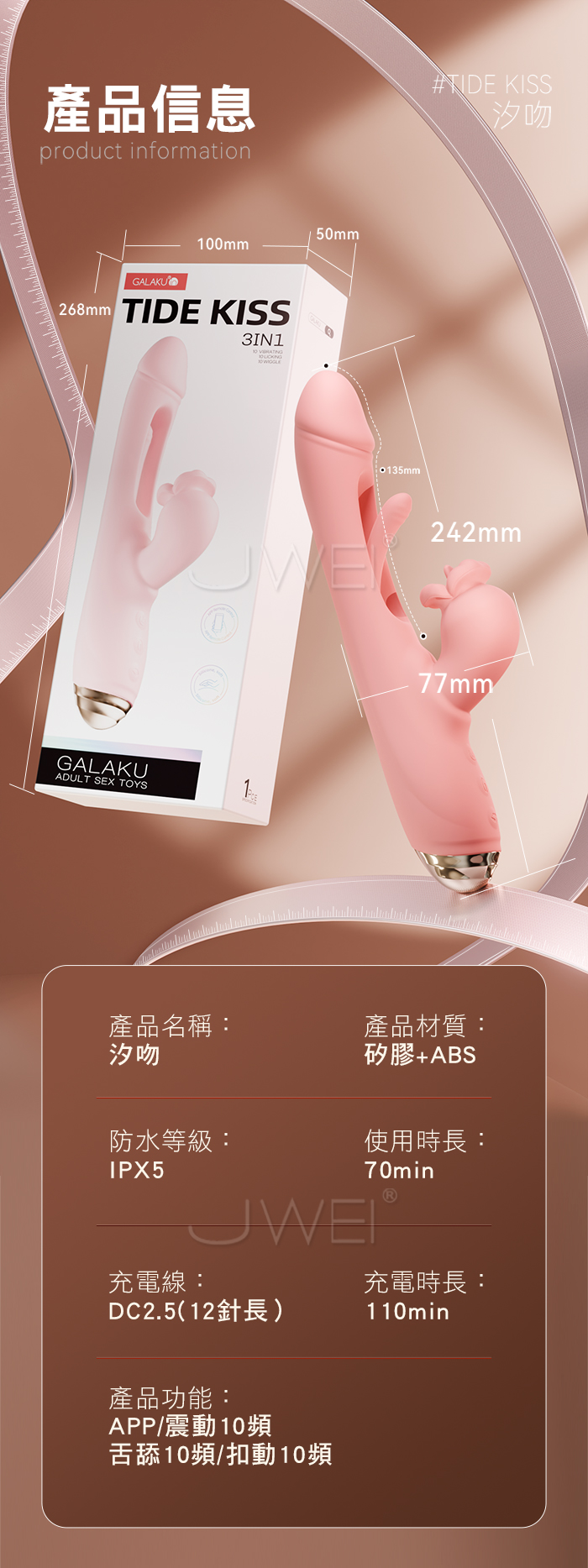 ■功能: 10頻震動、10頻舌舔、10頻扣動、APP智控