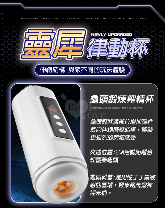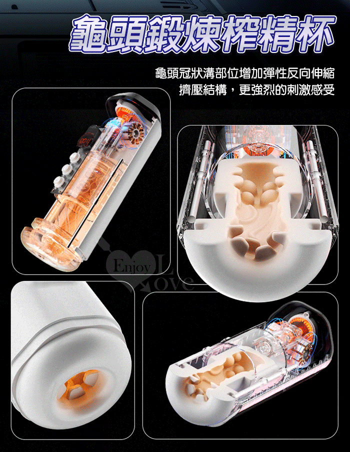 | 靈犀律動杯 ‧ 智能4頻調控伸縮+語音+計數鍛煉榨精飛機杯﹝四國語音呻吟+顆粒刺激腔道+耳機+USB充電﹞