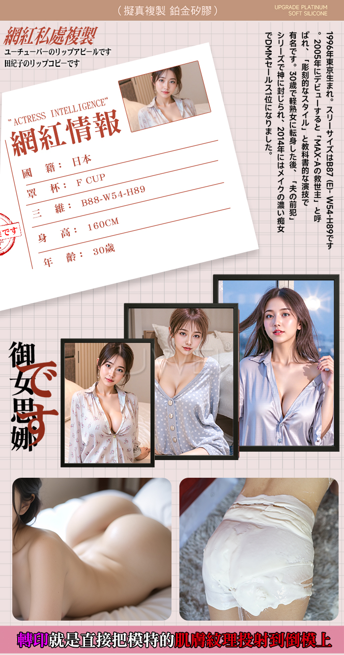 聖女臀(中) ‧ 春野映子の轉印私處~超高真人細膩血管皮紋鉑金矽膠兩穴真實名器﹝附贈200ml潤滑液﹞淨重4.6公斤