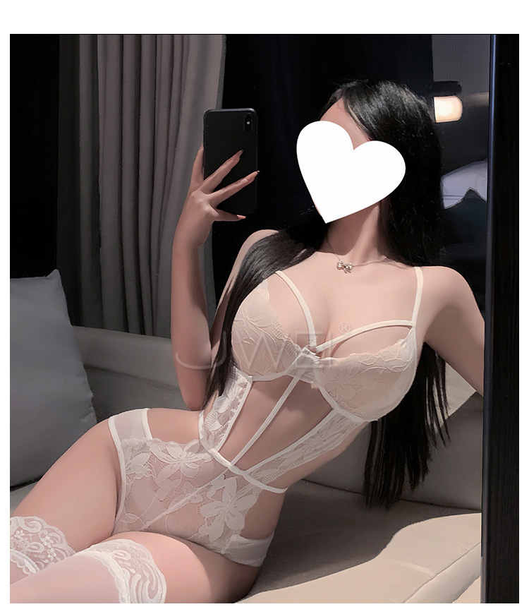 ►您現在的位置:首頁>夜闌私語.深V露溝花蔓蕾絲修身暗釦開襠連體衣【白色】