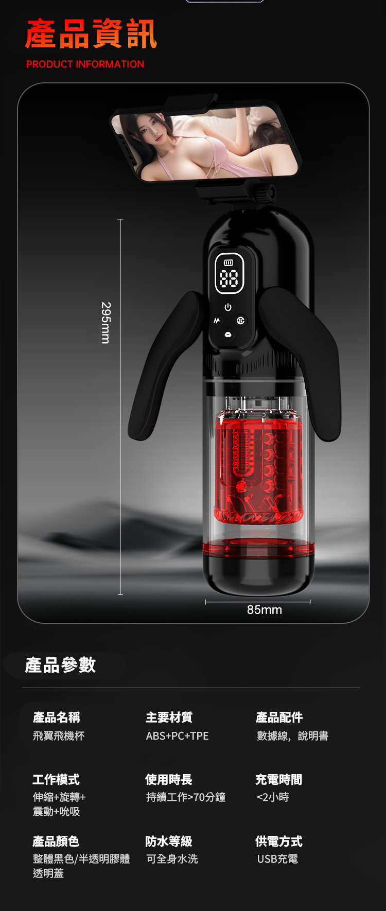 | Toyshcool飛翼.水浴SPA雙臂7變頻 伸縮+旋轉+吸吮飛機杯 IP65全防水