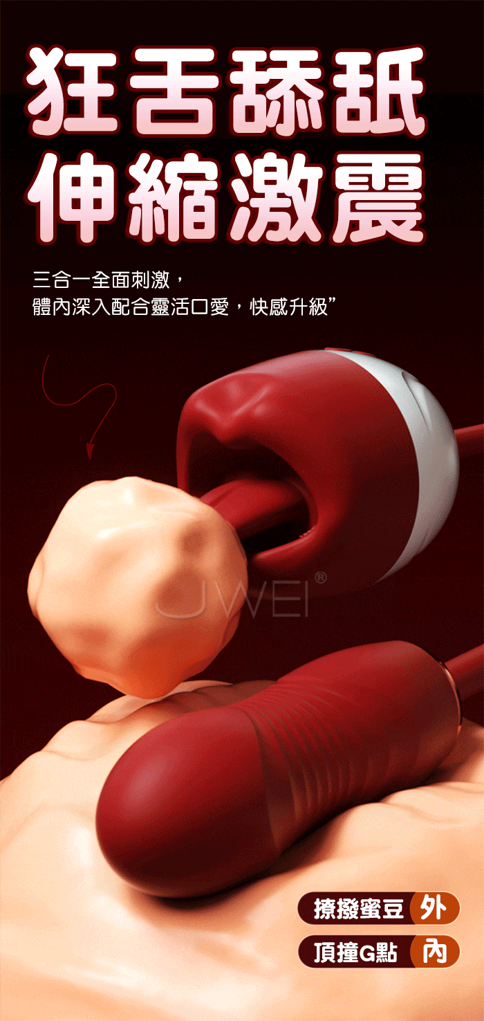 ►您現在的位置:首頁>謎姬 MizzZee.欲唇伸縮.12段變頻大嘴舌撩震動+伸縮頂撞 多頻調節口愛跳蛋 【舌舔伸縮款】