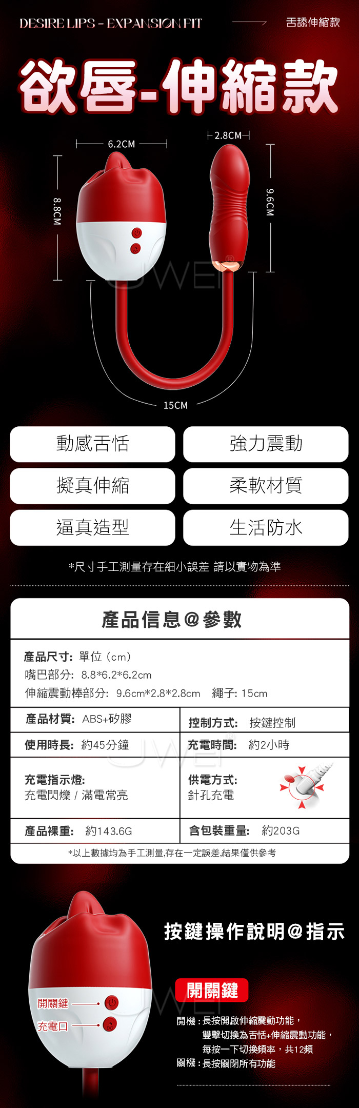 ■功能:12頻伸縮+舌舔+震動