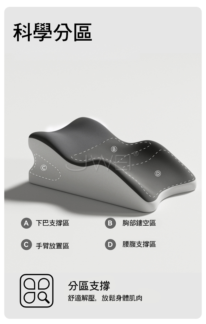 各種姿勢輕鬆應對,一體化曲線設計分區支撐,舒適解壓,放鬆身體肌肉