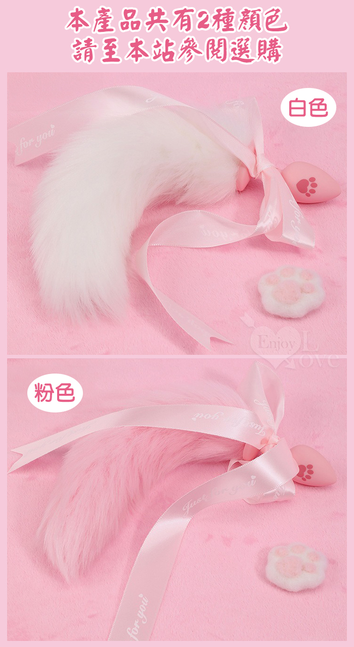 激性扮演 ‧ 蝴蝶結狐狸尾巴 可愛猫爪印親膚矽膠肛塞﹝白色﹞