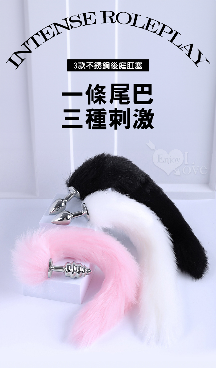 | 激性扮演狐狸精 ‧ 3款不銹鋼後庭肛塞+純粉尾巴毛套裝組﹝可組裝拆卸﹞