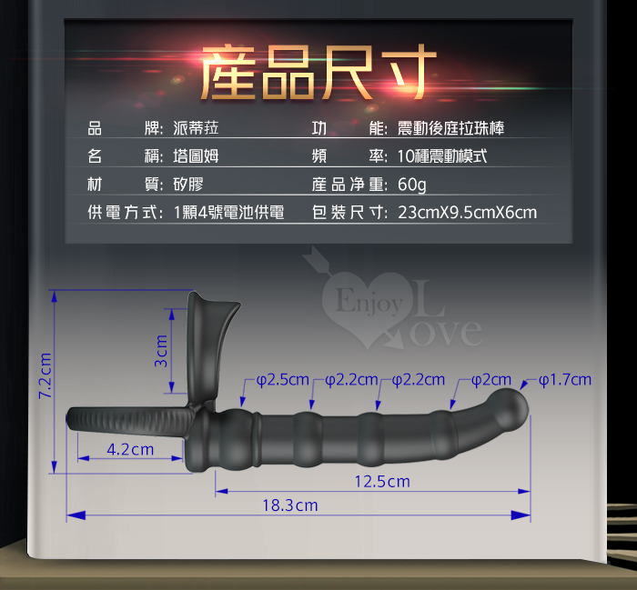 ►您現在的位置:首頁>派蒂菈 ‧ TATUM 塔圖姆 男用穿戴束精雙套環~10變頻震動後庭拉珠棒