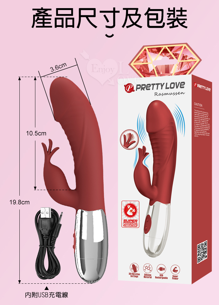 | PRETTY LOVE 派蒂菈 ‧ 飛天鵝 雙重強震 內外同享30頻老二頭按摩棒-洋紅 Rasmussen