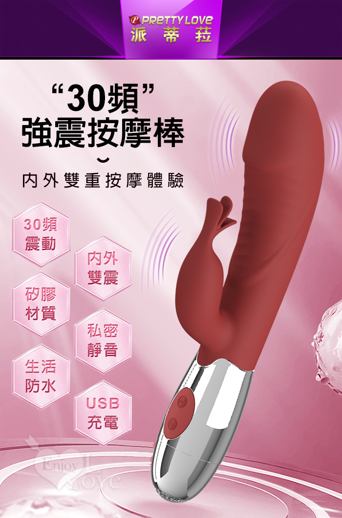 | PRETTY LOVE 派蒂菈 ‧ 頑皮兔 內外雙重30頻雙頭同震按摩棒-充電款
