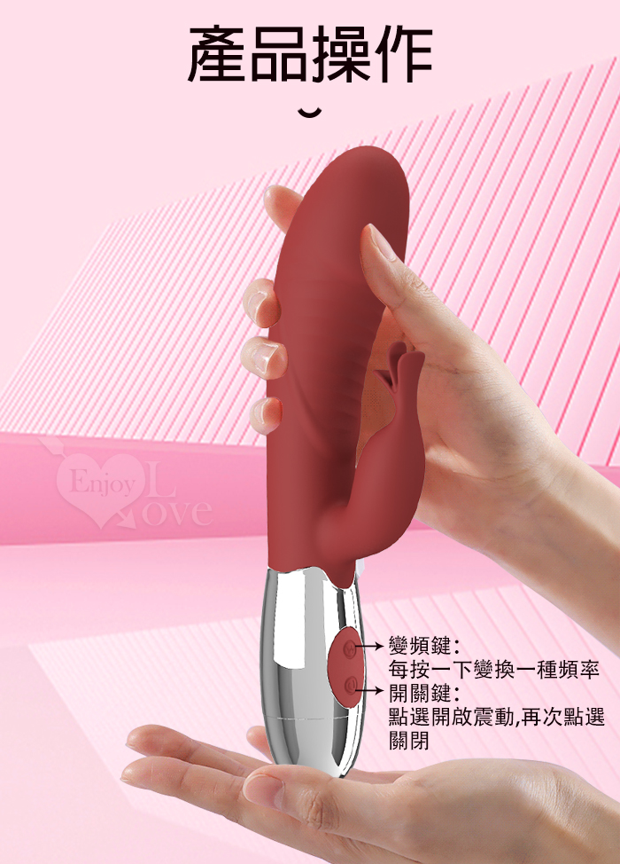 | PRETTY LOVE 派蒂菈 ‧ 頑皮兔 內外雙重30頻雙頭同震按摩棒-洋紅