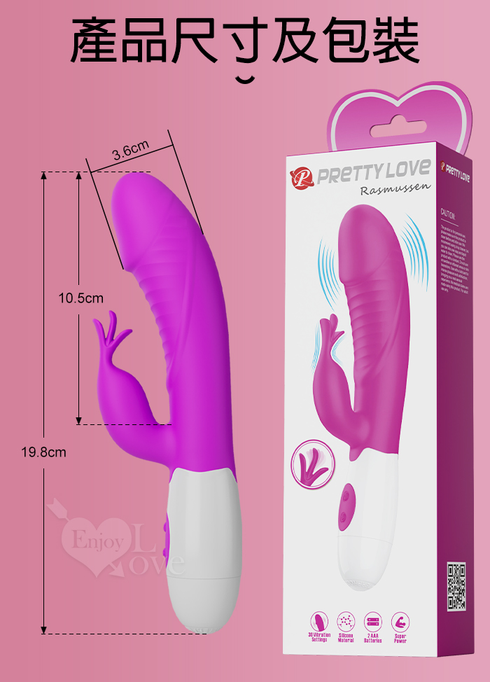 | PRETTY LOVE 派蒂菈 ‧ 飛天鵝 雙重強震 內外同享30頻老二頭按摩棒-洋紅 Rasmussen