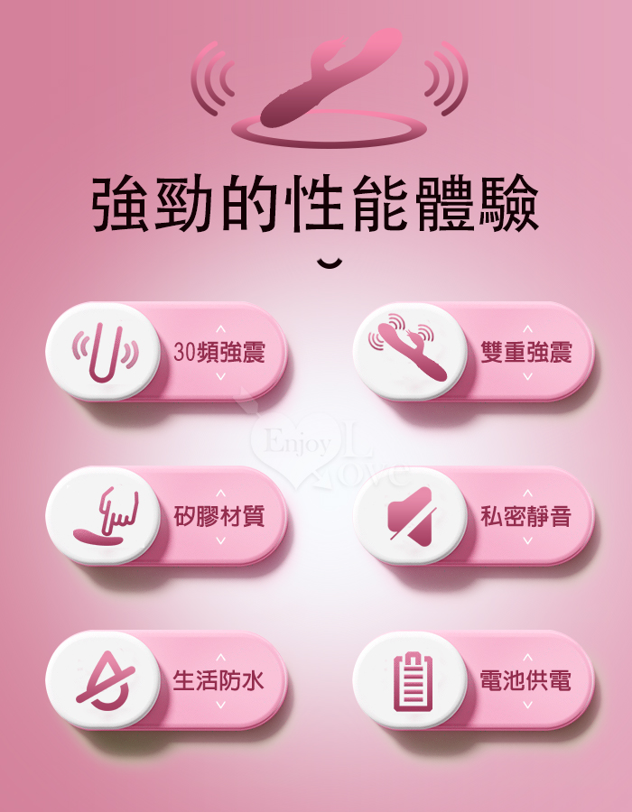 | PRETTY LOVE 派蒂菈 ‧ 頑皮兔 內外雙重30頻雙頭同震按摩棒-洋紅