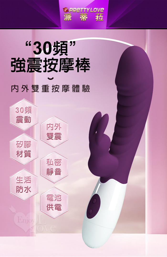 | PRETTY LOVE 派蒂菈 ‧ 頑皮兔 內外雙重30頻雙頭同震按摩棒-深紫
