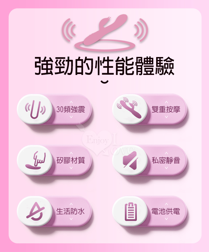 | PRETTY LOVE 派蒂菈 ‧ 頑皮兔 內外雙重30頻雙頭同震按摩棒-洋紅