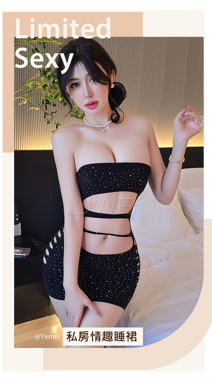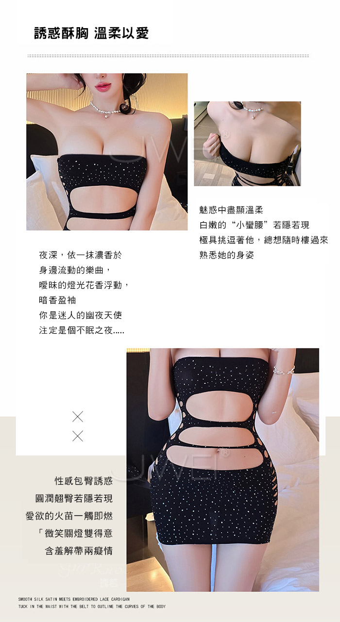 ►您現在的位置:首頁>極光閃耀.低胸平口閃鑽挖空露腰性感包臀網衣