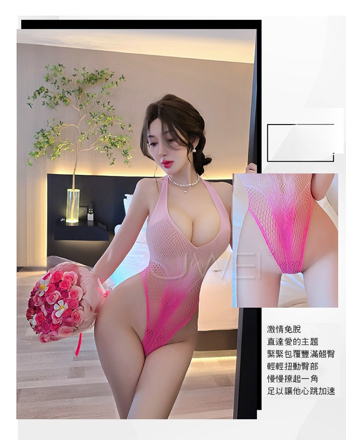 織夢花園.漸變色深U高衩大網情趣連體性感貓裝【粉色】