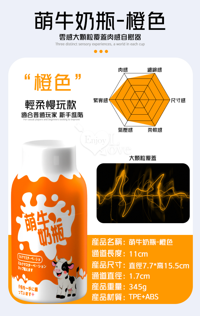 | 萌牛奶瓶 ‧ 云感大顆粒覆蓋肉感自慰器﹝初階輕柔慢玩款-橙色﹞