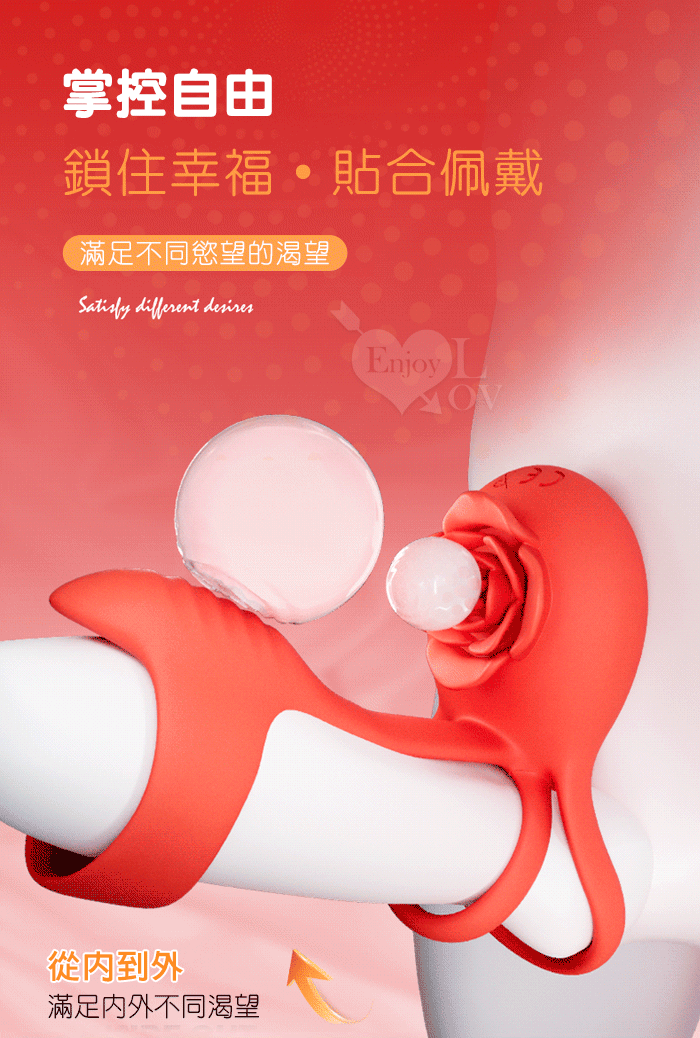 | YUNMAN 云曼 ‧ 玫瑰內外雙震加強套環﹝無線遙控/男女共爽/10頻双強震/3環鎖精固蛋/花瓣撩撥蜜豆/矽膠舒適﹞