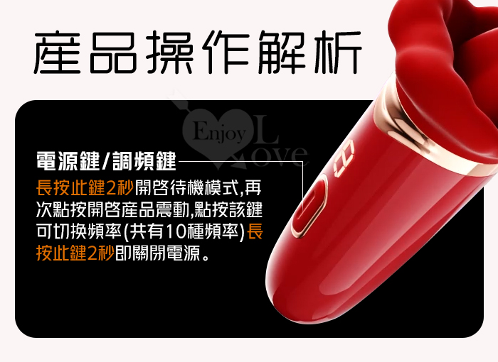 ROSELEX 蜜吻舌舔!10X頻激震舌擺數碼顯示拍震按摩器﹝前戲調請‧挑逗自慰最佳聖品﹞紅