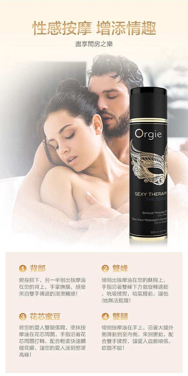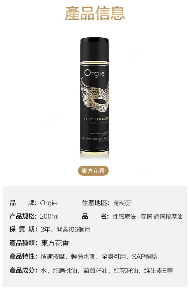 ►您現在的位置:首頁>葡萄牙Orgie.Sexy Therapy MASSAGE OIL 性感療法 - 春情 調情按摩油 200ml